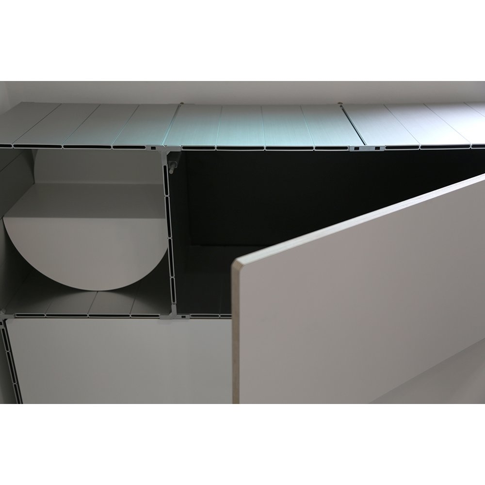 韓國新銳品牌 Monstructure 品牌創辦人 Kim Byung Ho 畢業於英國聖馬丁設計學院,爾後創辦 Monstructure 品牌,品牌以永續使用的鋁合金材質創造出不同形式的零件,使用者可依照需求及喜好自行規劃系統櫃的尺寸及功能,透過板材及卡扣零件組合,可無限的延伸。