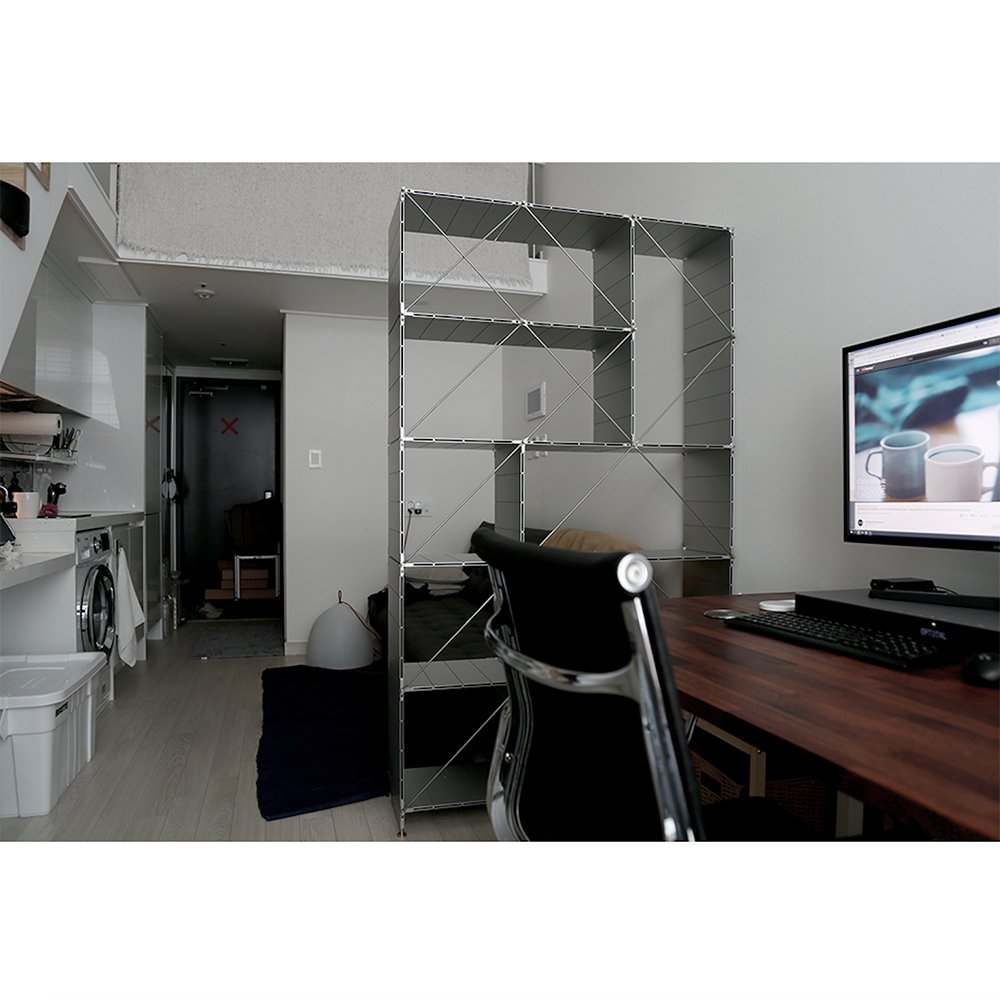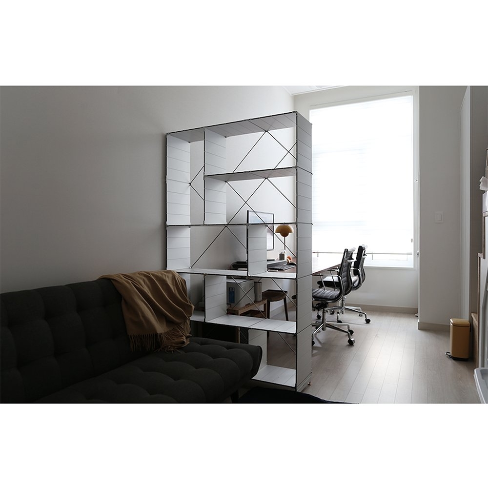 韓國新銳品牌 Monstructure 品牌創辦人 Kim Byung Ho 畢業於英國聖馬丁設計學院,爾後創辦 Monstructure 品牌,品牌以永續使用的鋁合金材質創造出不同形式的零件,使用者可依照需求及喜好自行規劃系統櫃的尺寸及功能,透過板材及卡扣零件組合,可無限的延伸。