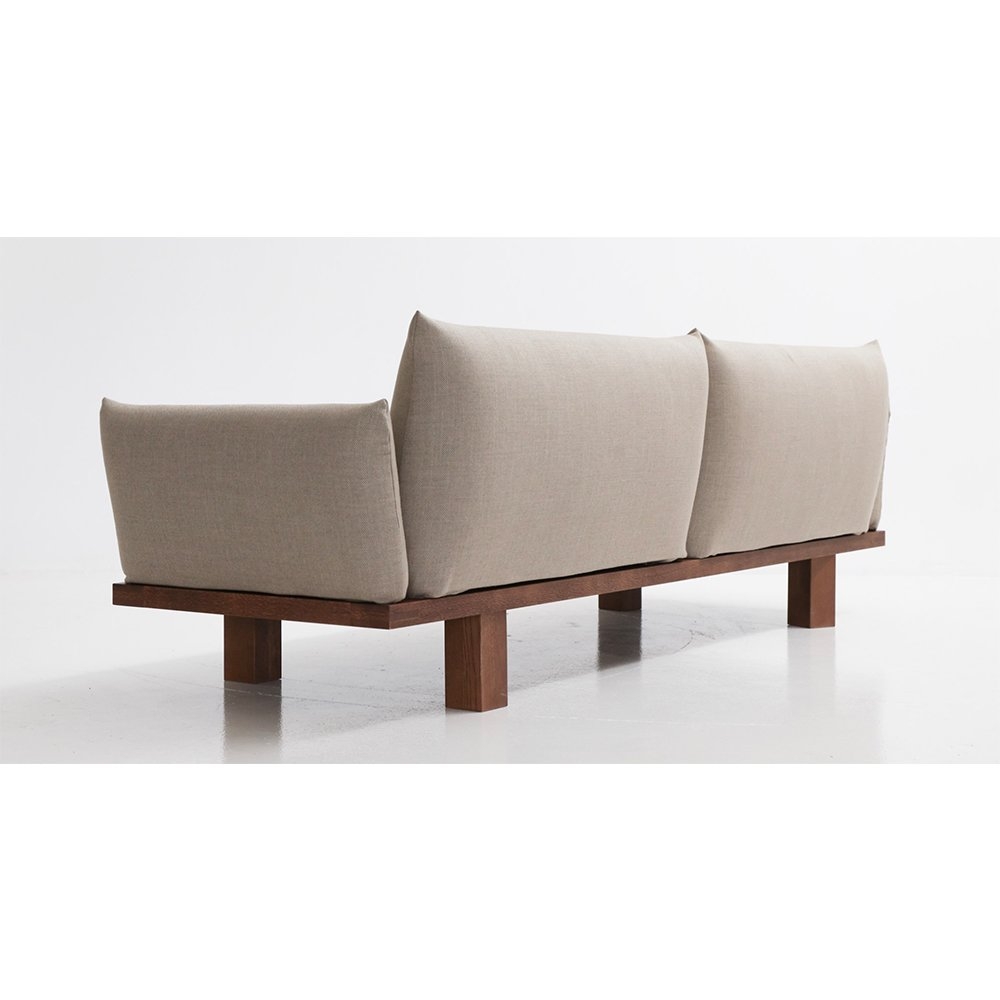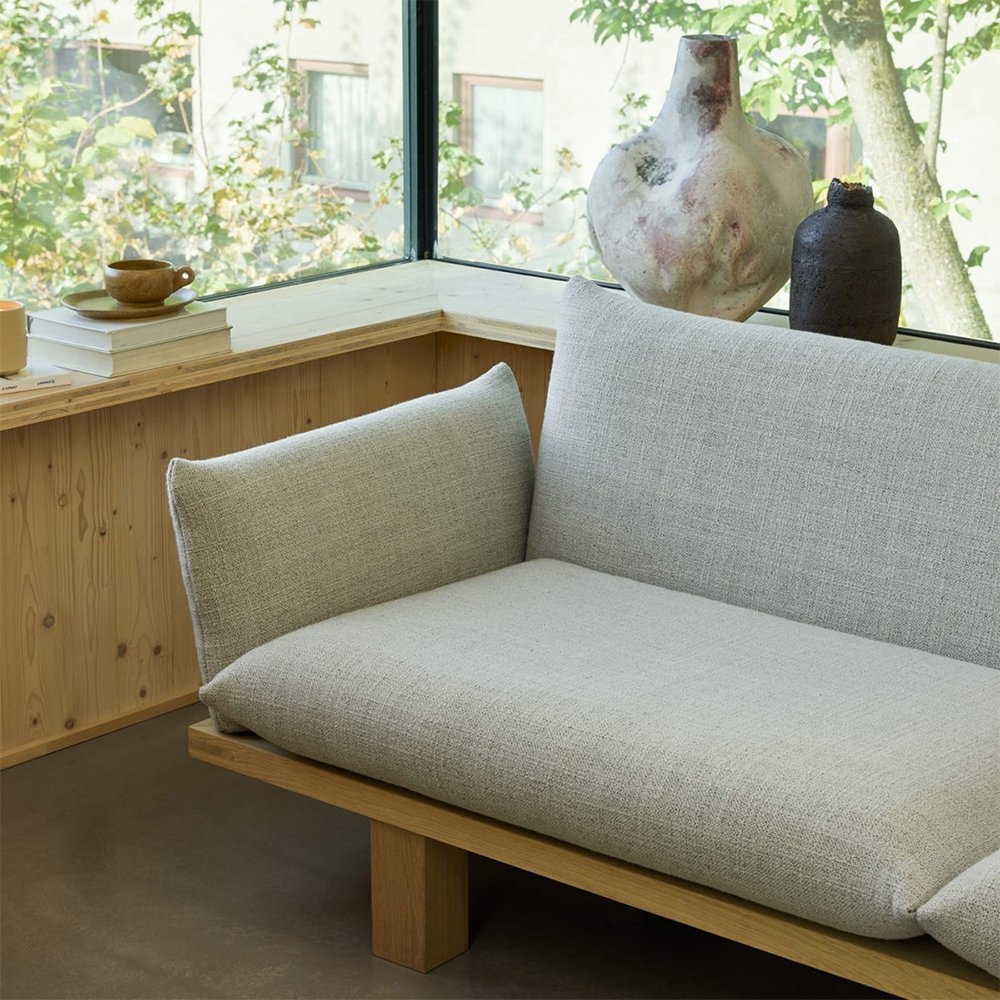 LESS 沙發由兩個主要元素組成:柔軟的休閒靠墊和獨特的實木底座。