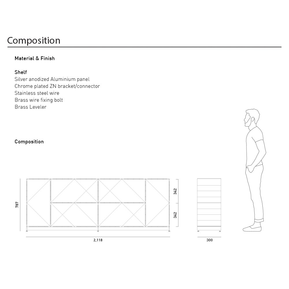 韓國新銳品牌 Monstructure 品牌創辦人 Kim Byung Ho 畢業於英國聖馬丁設計學院,爾後創辦 Monstructure 品牌,品牌以永續使用的鋁合金材質創造出不同形式的零件,使用者可依照需求及喜好自行規劃系統櫃的尺寸及功能,透過板材及卡扣零件組合,可無限的延伸。