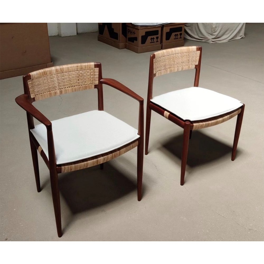 INODA+SVEJE 創造 Tangāli 餐椅的目的是製作一張又大又寬敞的單椅。它有兩種選擇——有扶手和無扶手-可以用作餐椅或工作椅。 椅子的核心由天然實木柚木和藤編製成,由 INODA+SVEJE 專門為此系列開發。特殊的座墊經過專門設計,完美融合於單椅,並在手扶和背靠背有修飾,可以選擇是否需要加購。圖上的坐墊顏色為 淺奶油色“Taboga Dove”,也可以自行選擇 100% 純棉安達曼布料系列的多種顏色。