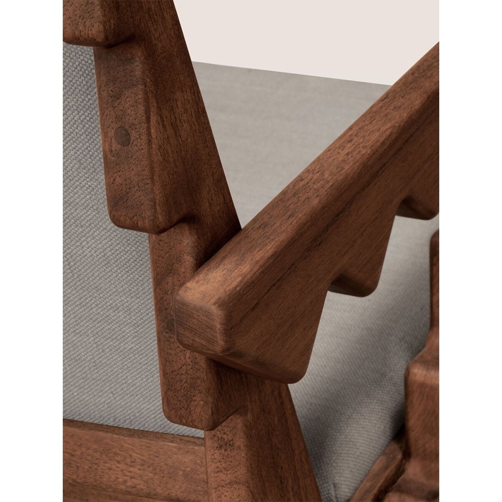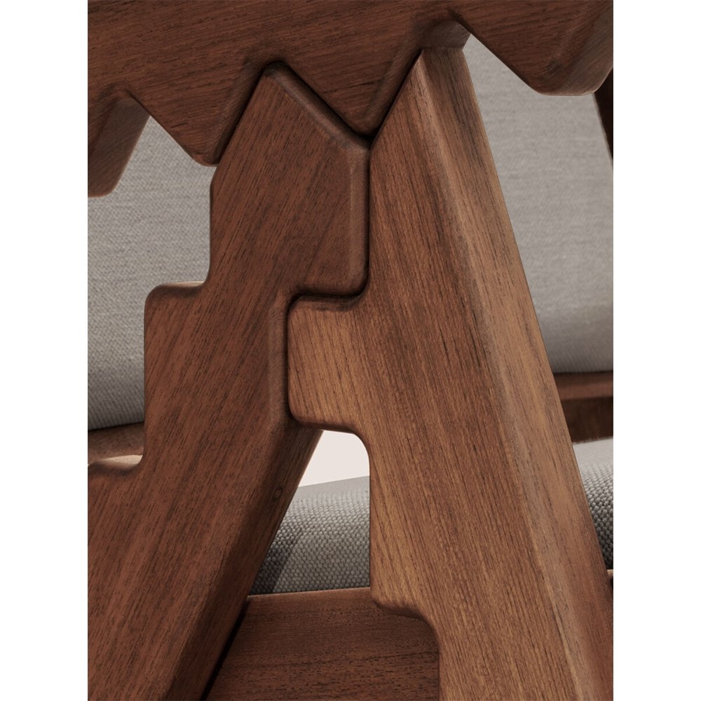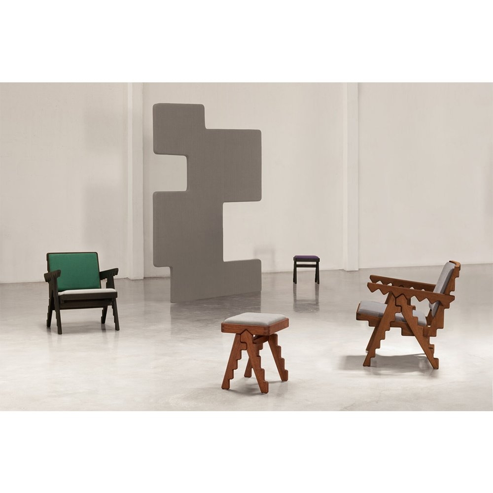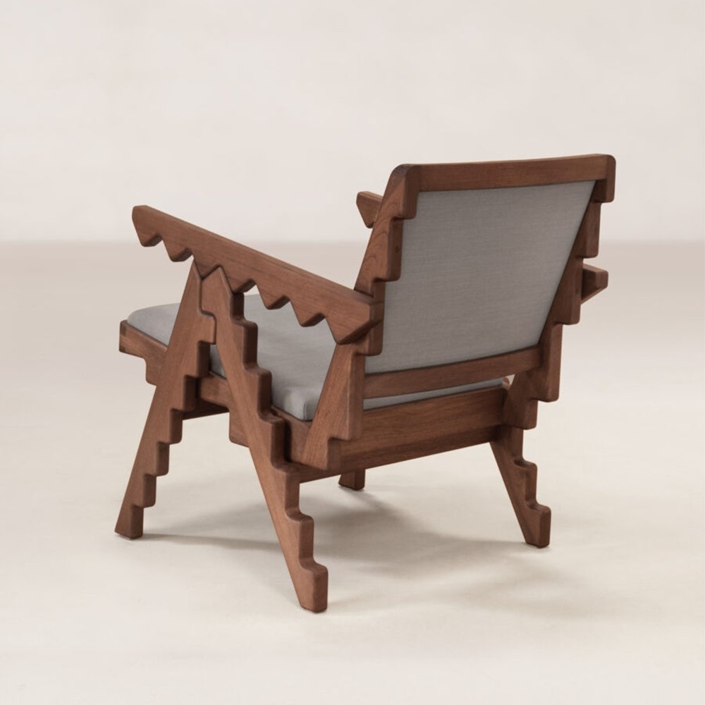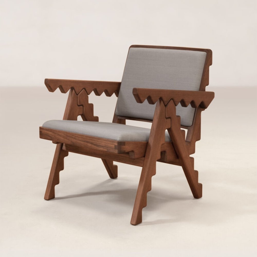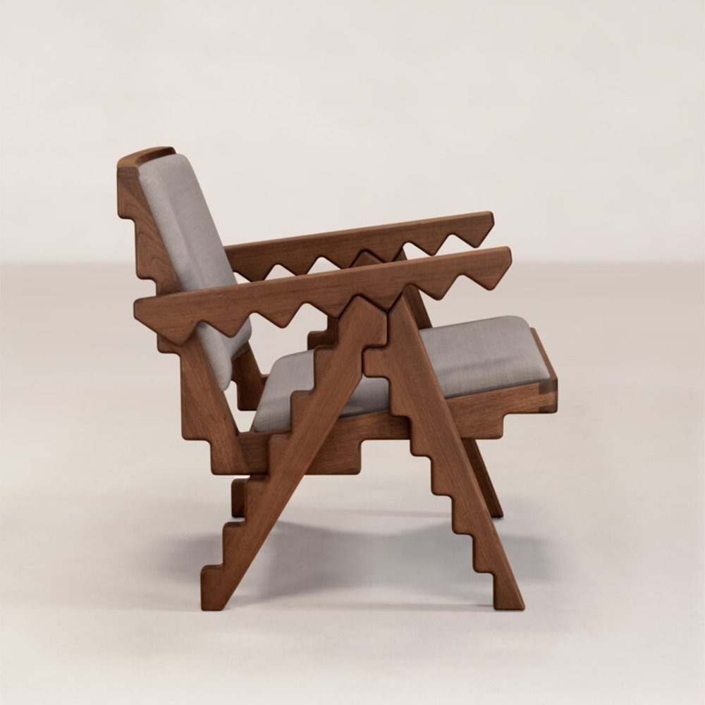 鋸齒形圖案貫穿椅子的靠背、扶手和腿的側面,形成獨特的邊緣,讓人聯想到彩旗、樓梯或…鱷魚牙齒的圖像。仔細觀察會發現,沒有尖銳的邊緣,只有柔和的圓形曲線。形成之字形圖案的元素以完全揭示而不是隱藏細木工細節的方式連接在一起。 這款椅子有兩種木質飾面可供選擇,每種木質飾面有四種織物顏色搭配,全部由 Felix 精心製作。內裝顏色由我們的布料合作夥伴 Zanav Home 透過傳統的還原染色手紡紗線工藝客製化開發。
